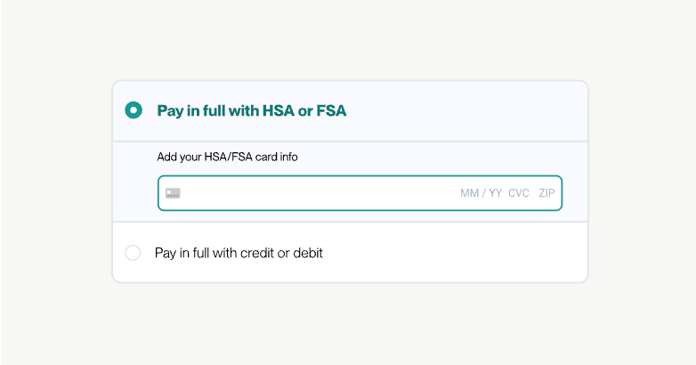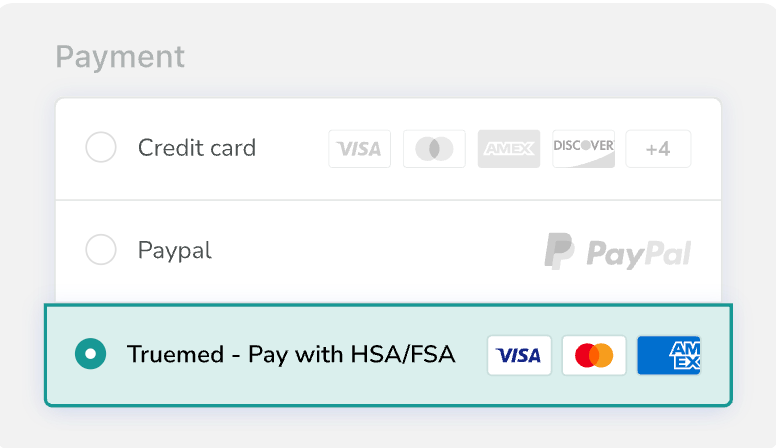 Do not pay with an HSA/FSA card during checkout. After your purchase, check your confirmation screen or receipt email for a link to the Truemed survey.